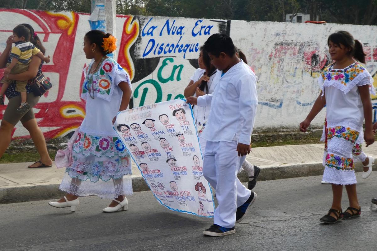 Was uns diesbezüglich sehr berührt hat, war eine Demonstration engagierter Kinder und Jugendlicher in Chichén Itzá, die für den Erhalt der verschiedenen Mayasprachen auf die Straße gegangen sind. Abseits der einträglichen Ruinenstätten vergisst die Politik, Kultur und Sprache der Maya zu schützen und es ist, wie wir erfuhren, zum Beispiel immer seltener Teil des Unterrichts, sich damit auseinanderzusetzen. Zum Glück gibt es Demos wie diese und mittlerweile einige Initiativen, um diesen Missständen entgegenzuwirken und darauf aufmerksam zu machen!