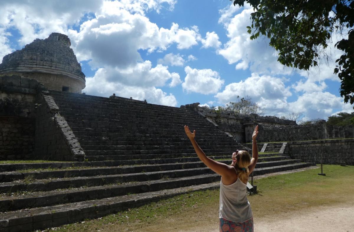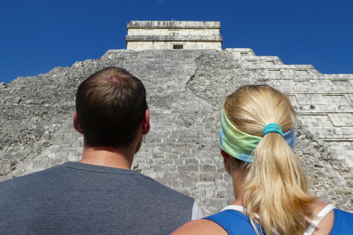 Ohne viel Vorwissen besuchten wir die Ruinen von Chichén Itzá. Diese beeindruckende Ruinenstadt zeugt von der einstigen Größe und Macht der Maya. Wir bekamen einen kleinen Einblick in alte Bräuche und astronomische Kenntnisse dieser einstigen Hochkultur. Zum Bedauern vieler wurde fast das gesamte Wissen der Maya von den spanischen Eroberern vernichtet und viele Archäologen tun sich immer noch schwer, diese verlorenen Kulturschätze zu rekonstruieren. Wenig ist bekannt und belegt. Warum die Stadtstaaten der Maya untergingen, ist nach wie vor ein Rätsel. Daher sparten wir uns das Geld für einen teuren Guide und schauten uns ein paar Dokus dazu an. Wenn ihr mal hier seid, solltet ihr die Ruinen entweder sehr früh (wie wir) oder sehr spät am Tag besichtigen, da hier der Tourismus bereits sehr ausgeprägt ist. Zudem ist die Atmosphäre dieser andächtigen Stätten durch die Anwesenheit zahlreicher Souvenirhändler getrübt. Wir beobachteten, wie die Zahl der Stände stündlich zunahm und immer näher an den Ruinen aufgebaut wurden, um uns Schmuck, Klamotten und zahlreichen anderen Klim-Bim zu verkaufen. Nach etwas Recherche fanden wir heraus, dass all diese Händler Nachfahren der Maya sind. Sie haben sich in der Vergangenheit das Recht erstritten, direkt bei den Stätten ihrer Ahnen Handel betreiben zu dürfen. Die Sache hatte für uns einen beträchtlichen Nachgeschmack. Durch den Verkauf der chinesischen Souvenirs nehmen sie sich lediglich ein kleines „Stück vom Kuchen“. Im Gegensatz zu Chichén Itzá werden die Ruinen von Palenque (die wir leider nicht besuchten) von Nachkommen der Maya betrieben. Dort werden keine massenhaften Souvenirs verkauft. Dafür arbeiten dort die Maya mit ursprünglicher Technik an der Restauration der Tempelanlagen und geben Einführungen in die Sprache und Kultur ihrer Vorfahren. Aus meiner Sicht ist das der weitaus sympathischere und nachhaltigere Ansatz, den wir glücklicherweise zu einem späteren Zeitpunkt unserer Reise in Tikal (Guatemala) erfahren durften.