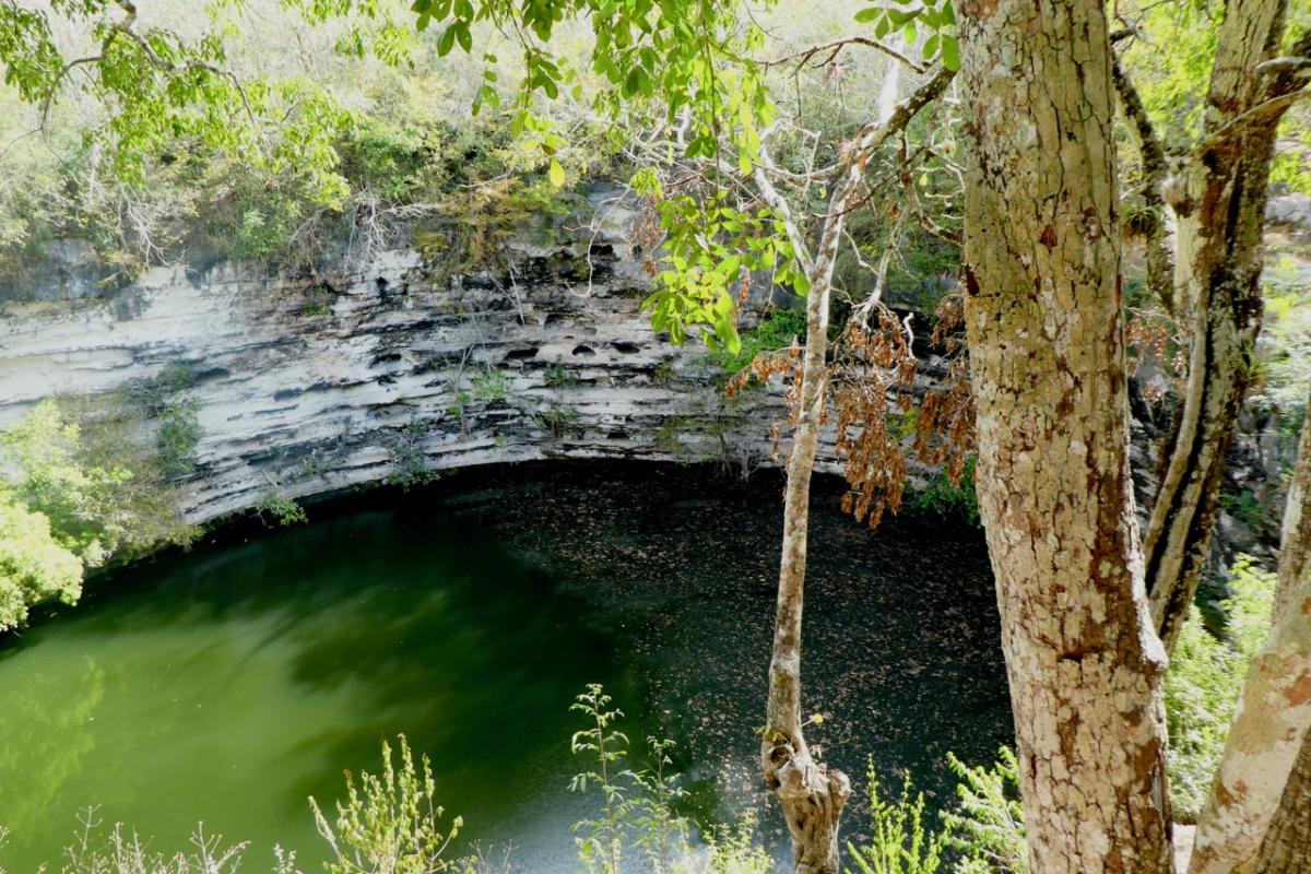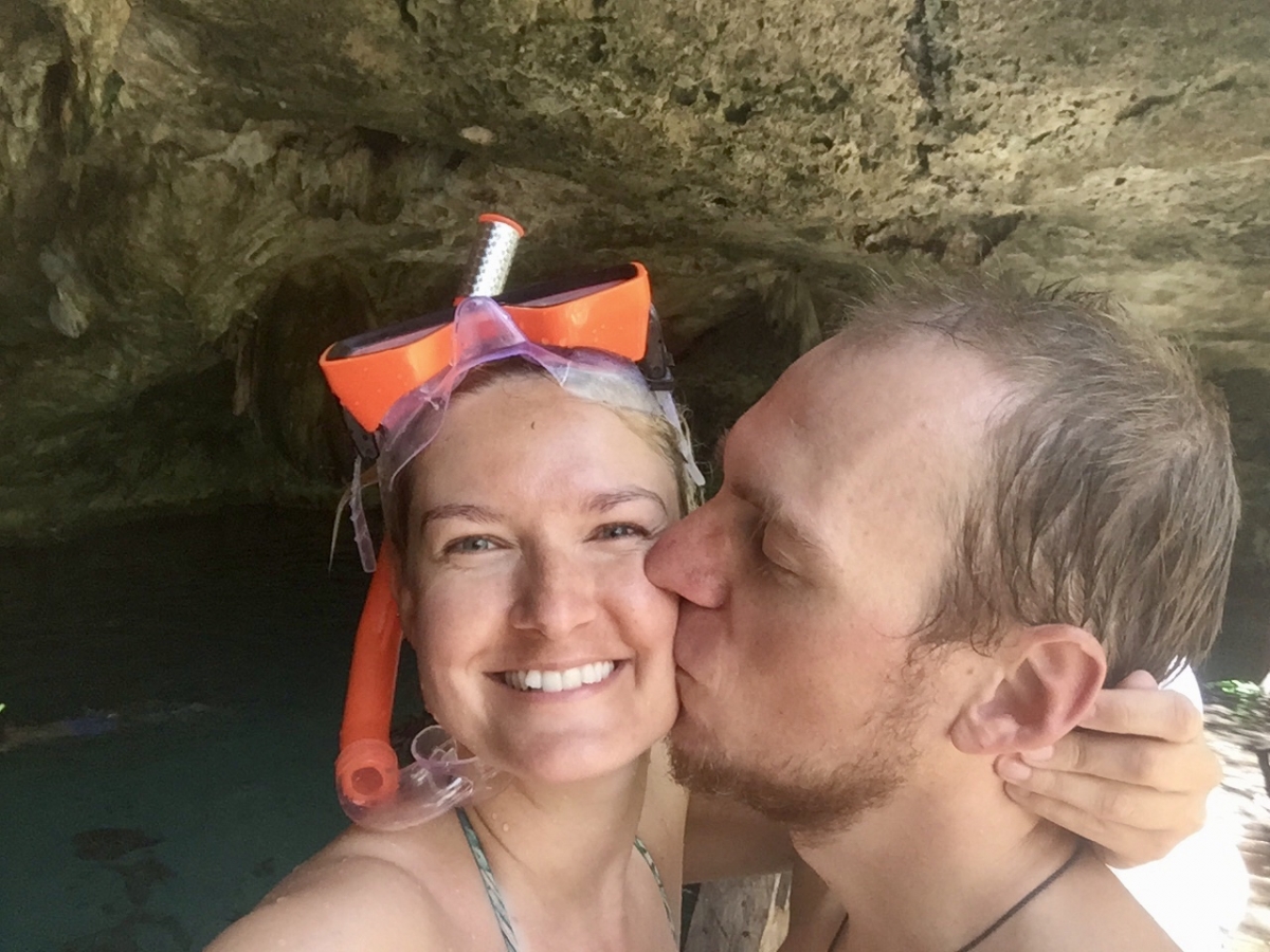 Ausgestattet mit unserer „Luxuskarre“ machten wir uns auf den Weg, die Gegend zu erkunden. Alle Reiseführer und Blogs beschrieben die Einzigartigkeit der hier vorkommenden Cenotes. Deshalb wollten wir herausfinden, was es damit auf sich hatte. Bereits die alten Mayas waren fasziniert von der Magie dieser mit kristallklarem Wasser gefüllten, oft unterirdischen Höhlensysteme. Cenotes galten als Tor zur Unterwelt und wurden sehr häufig als Schreine für Opfergaben verwendet. Mittlerweile finden dort zum Glück keine blutigen Rituale mehr statt. Vielmehr haben es die Mexikaner verstanden, die Schönheit dieser Orte zu vermarkten und für den Tourismus zu nutzen. Um die größten dieser Höhlen entstanden sogar Vergnügungsparks. Diese spülen jetzt zahlreiche Dollars der Gringos in die mexikanischen Kassen. Für die meisten zahlt man ein wenig Eintritt, um den Erhalt zu finanzieren, was vollkommen ok ist. Einige Kleinere kann man auch gratis besuchen. Wir schnorchelten in der Cenote Dos Ojos und der Casa Cenote. In der ersten sieht man filigrane Stalagtiten und -miten, die durch die Wasseroberfläche brechen. In der Casa Cenote tauchten wir durch belebte Mangrovenwälder mit zahlreichen Fischarten. Wer gerne schnorchelt, sollte so viele Cenotes wie möglich besuchen, wenn er in Mexiko ist. Jede ist einzigartig und hat ihren eigenen Charme.